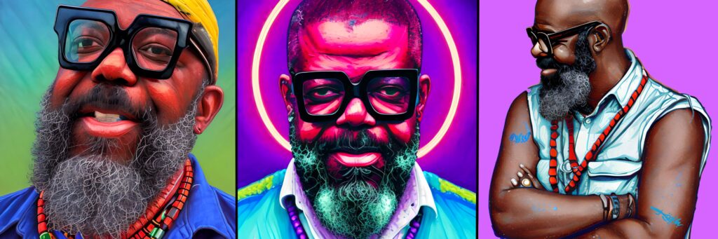 First the “subject” will have a creative discussion with John to decide which of the styles shown below will be used. Will it be a standard painterly look, a fantastical setting or an elaboration of the subject using AI. Then the subject will sit for a series of photos.